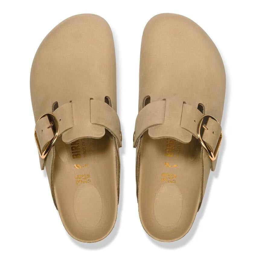 Since being introduced back in 1977, the Boston clog continues to be a favorite among Birkenstock fans year after year. Still made with the original Birkenstock contoured cork footbed, this easy slip on style offers tremendous arch support and the legendary comfort that the Birkenstock brand has become famous for. The Big Buckle version features a large elegant buckle elevating the already iconic design.