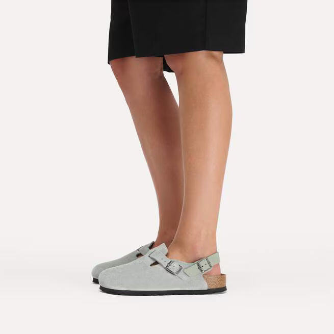 Everything you love about our clogs, with the added security of a backstrap, say hello to the Tokio in supple suede. Still made with the original Birkenstock contoured cork footbed, this style offers tremendous arch support and the legendary comfort that the Birkenstock brand has become famous for. It’s hard to part with this style once you fall in love with it.