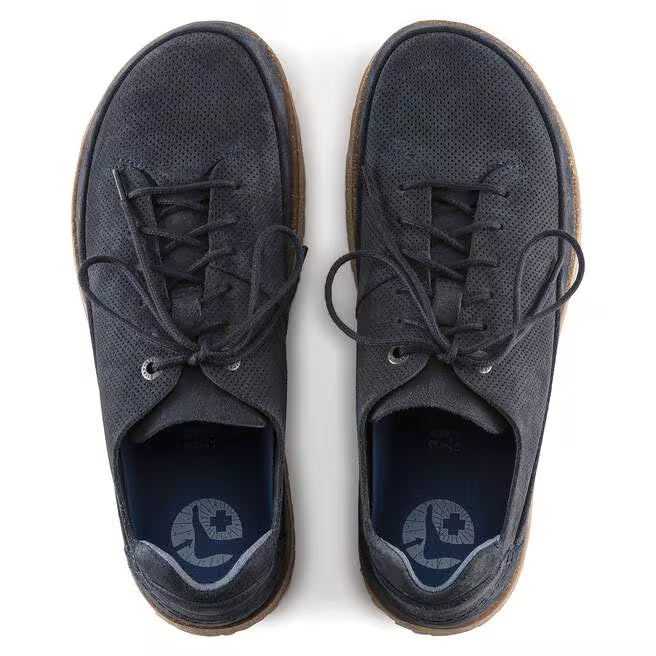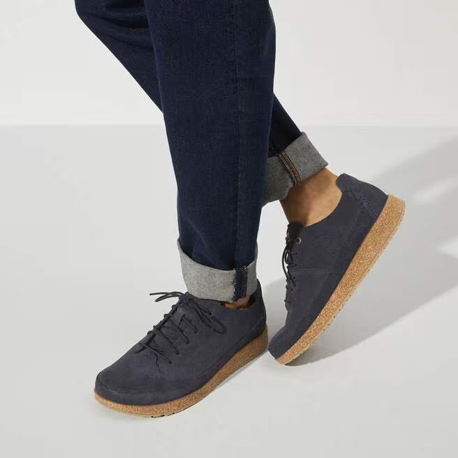 Birkenstock's most recent walking shoe engineered completely around the Deep Blue footbed. The four part footbed includes a moisture wicking microfiber liner, cork and jute layers for optimum arch support and a PU base for added shock absorption and forefoot cushioning. This style is a perfect choice to help carry you through a busy week or your next adventure.